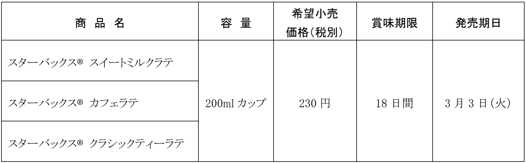 今回、「スターバックス® スイートミルクラテ」、「同 カフェラテ」、「同 クラシックティーラテ」の3商品を発売し、スターバックスならではの新しさ、ワクワク感、そして驚きに満ちた体験をご提案することで、今後も進化し続けてまいります。