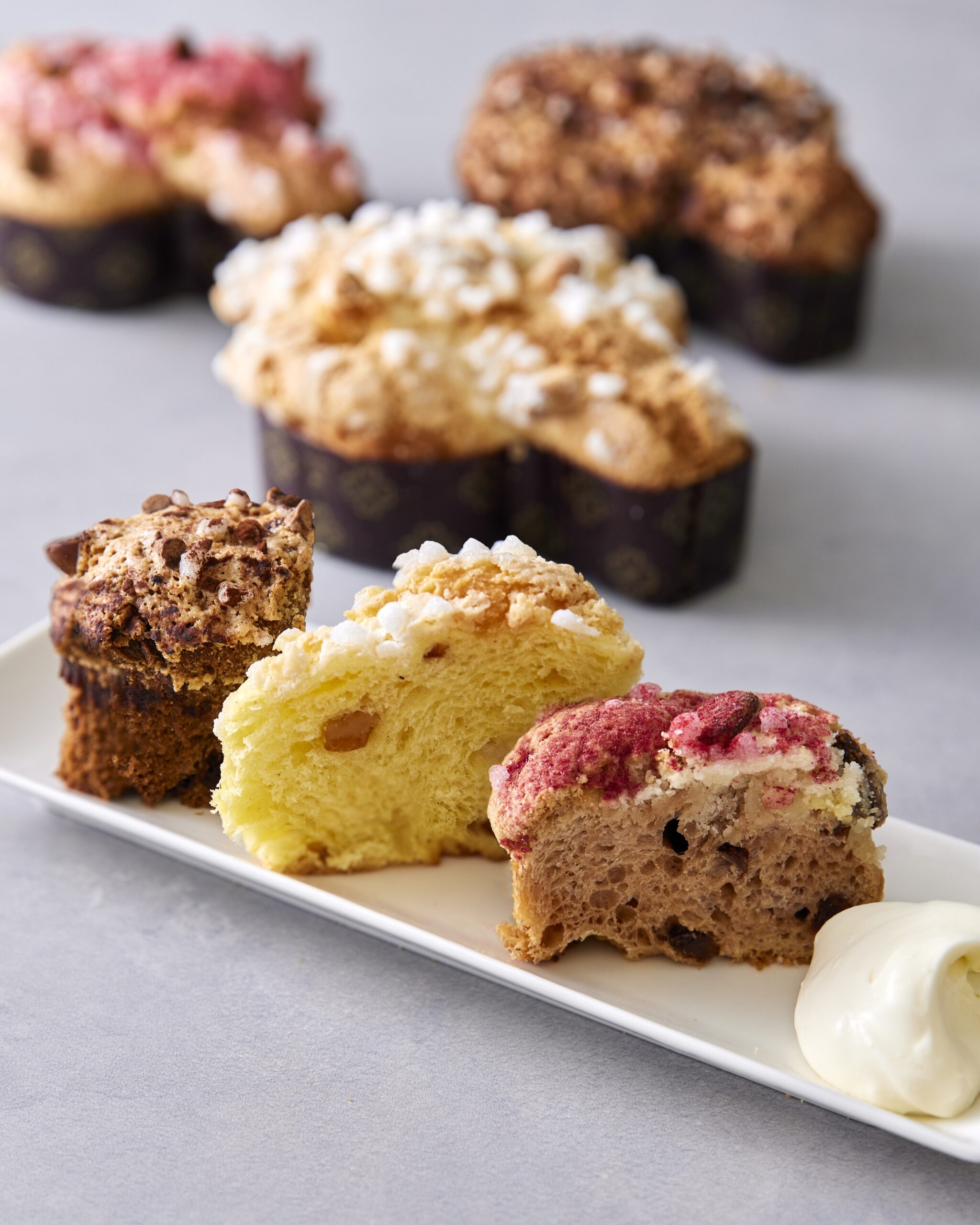 『プリンチコロンバパスクアーレ』は、本場の伝統的な製法で時間をかけて発酵させた生地のしっとりとろけるような食感と豊かな風味が特徴です。さらに本場イタリアの食文化を楽しんでいただくと同時に、日本のプリンチ®らしさも感じていただけるように、3種類の『プリンチコロンバパスクアーレ』をラインナップしました。