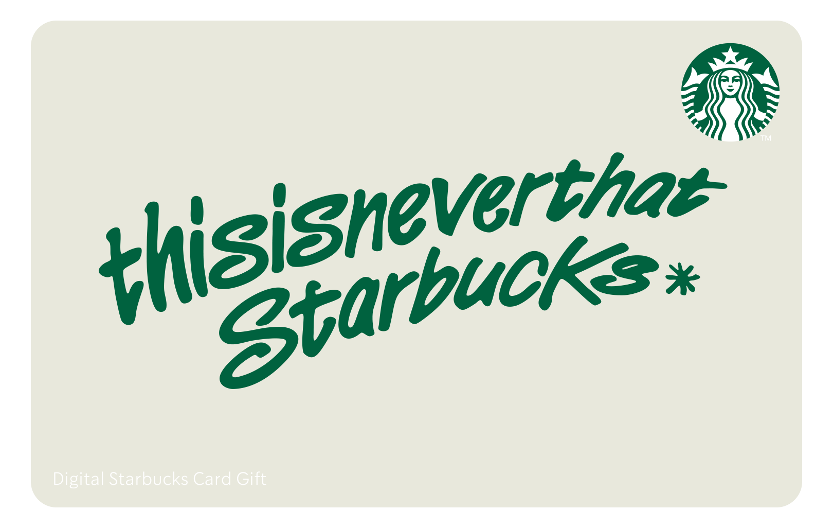 オンラインで簡単に発行できるデジタル スターバックス カードに、「thisisneverthat」のロゴタイプに「starbucks」を組み合わせたオリジナルデザインが登場します。