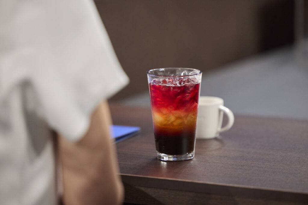 「好奇心を持って届けた一杯のラテアートがお客様に喜びや新しい発見を届けられた」という実感から、シグネチャービバレッジでは、コーヒーが得意でなかった頃に出会った“コーヒー×炭酸”で想いを表現。スターバックスが創業当初に届けていたコーヒー、ティー、スパイスにちなんだ、美しい3層のドリンクに仕上げました。