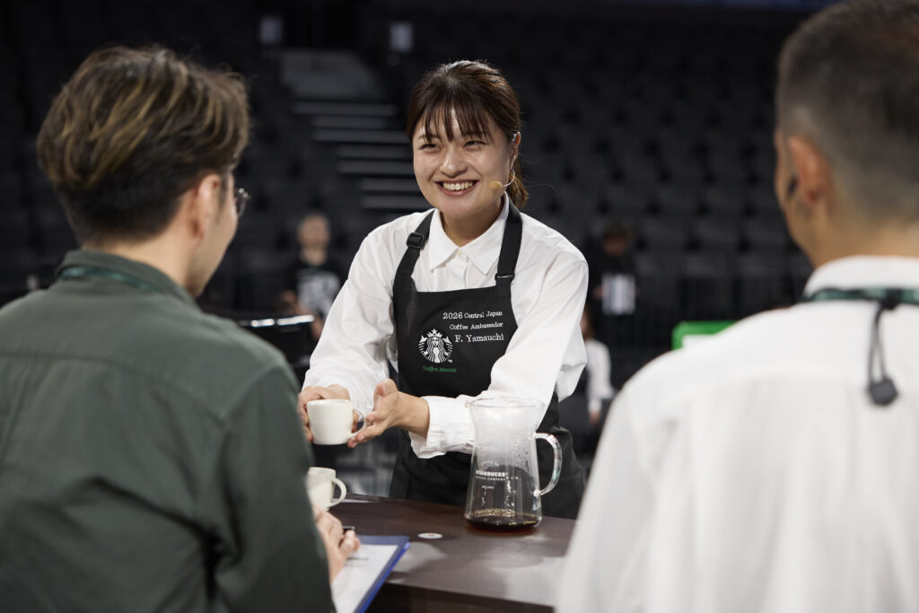 コーヒーへの情熱やスキルを競う2年に1度のコーヒーに関する社内競技会「第19回 コーヒー アンバサダー カップ2025」が10月、TOYOTA ARENA TOKYOで開催されました。今回は「コーヒーでつながろう。コーヒーを届けよう。」をテーマに、参加者213名の予選を勝ち抜いたファイナリスト4名が、2種類の競技を披露。スターバックス リザーブ® ロースタリー 東京(以下、ロースタリー 東京)の山口さんが第19代コーヒー アンバサダーに輝きました。一杯に込めた情熱と技術に会場が沸いた、当日の模様をお届けします。