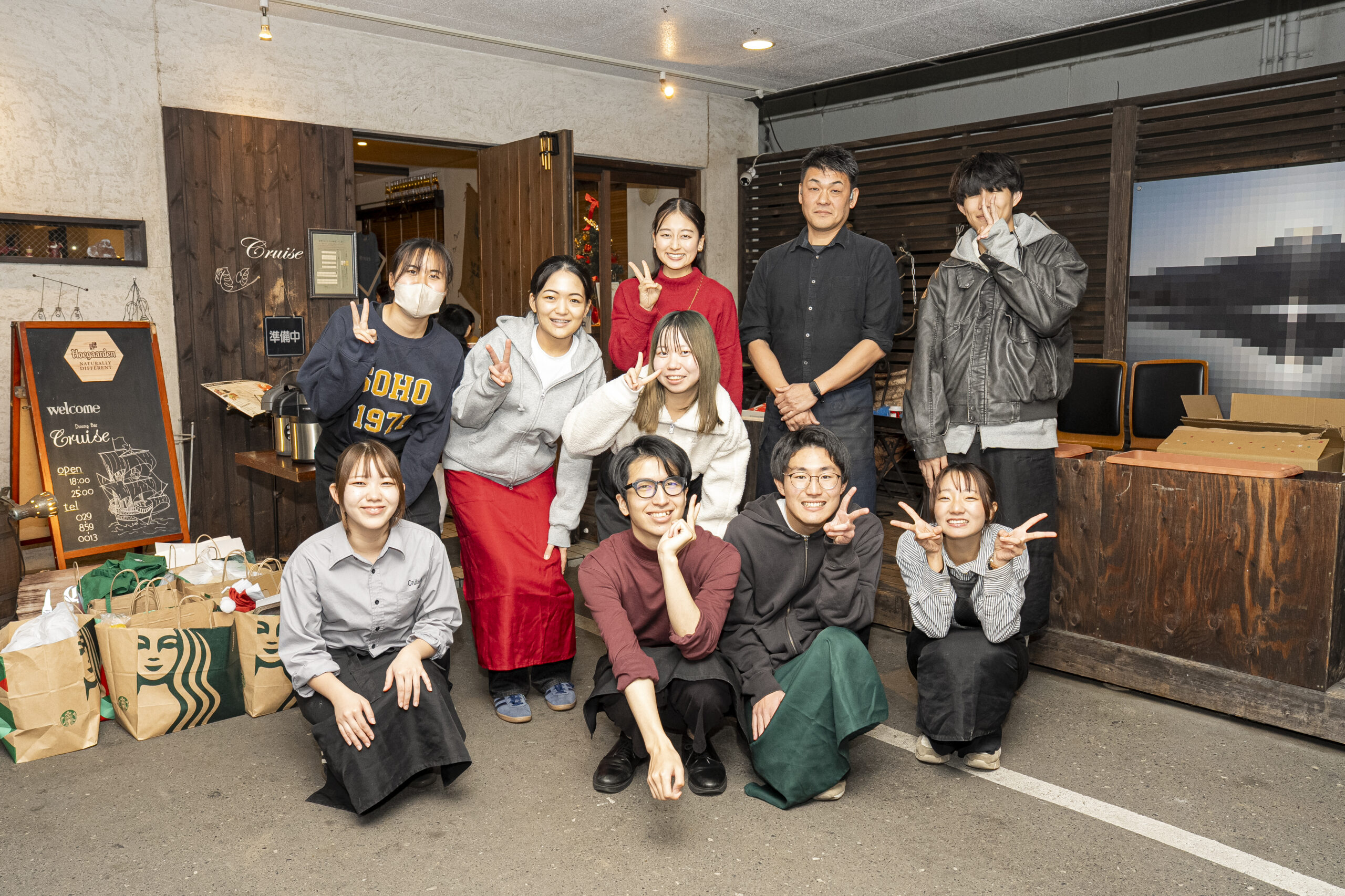 「筑波大生による、みんなの食堂」、通称・つくしょくは、筑波大学の学生が主体となって運営されているこども食堂です。会場となっている「ダイニングバー クルーズ(以下、クルーズ)」でアルバイトをする学生たちが地域のためにできることを模索し、バーのオーナー・渡辺さんの協力を得て2023年にスタートしました。毎月第2水曜日に、高校生以下は無料、大人は300円で食事を提供しています。