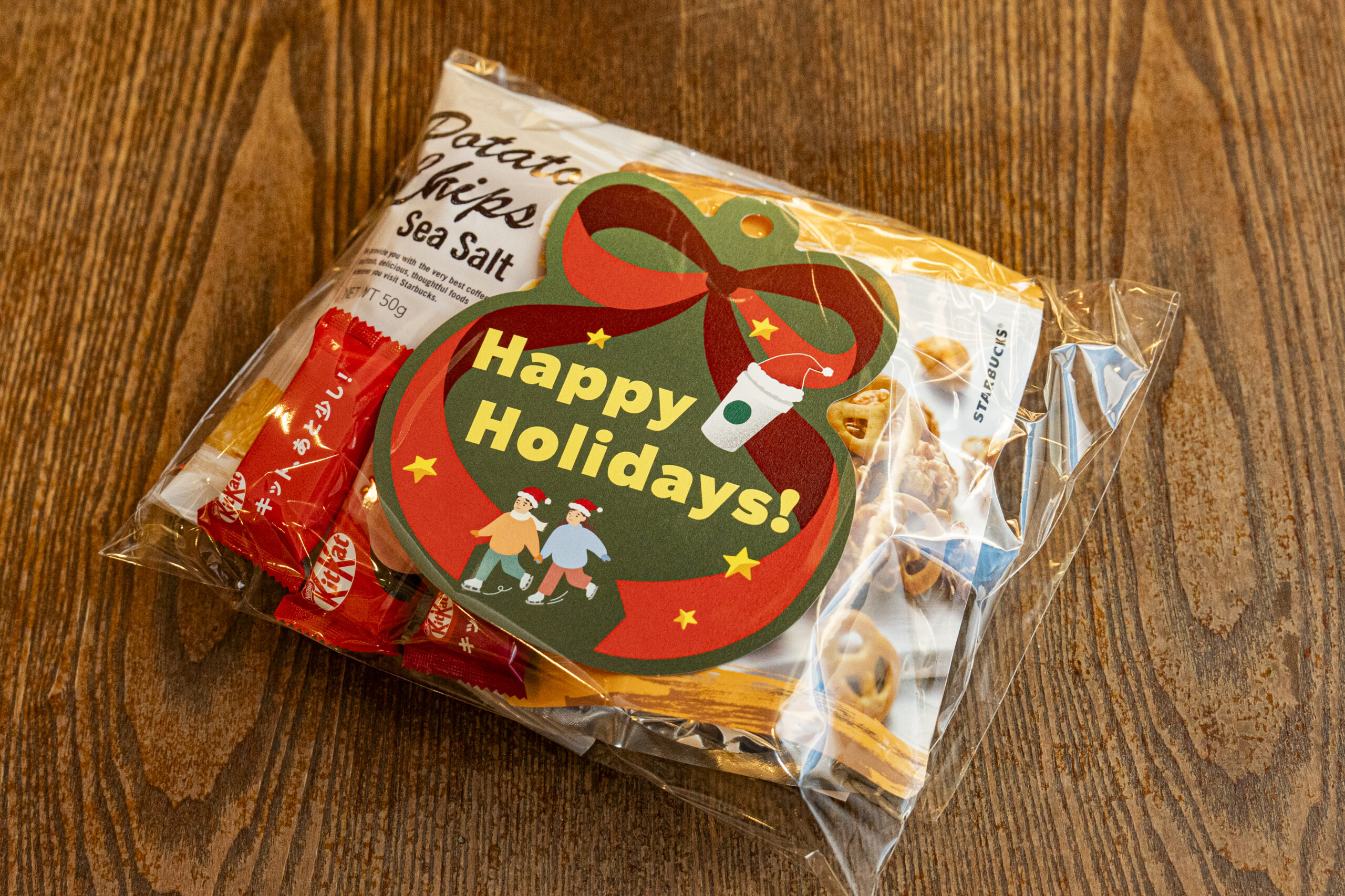 今年のギフトはポテトチップス シーソルト、キャラメルポップコーン&プレッツェルや、活動にご賛同くださったネスレ日本株式会社様から寄付いただいた「キットカット」の詰め合わせでした。